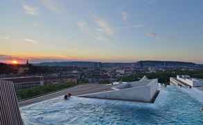 Стильный современный отель в центре, можно посещать термальный комплекс с бассейном на крыше и разными саунами. Мы с молодым человеком брали спа-ритуал для двоих, очень понравился отдых в частном спа, массаж, угощения. Очень красивая библиотека, вкусные завтраки, отличный номер с прозрачной ванной. Мы всем довольны, рады, что остановились здесь.