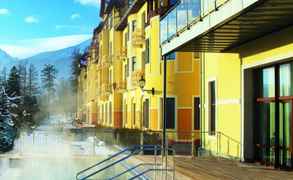 Это отель и насладиться потрясающим архитектурных взглядов, очень ярких снаружи, у которой есть ощущение "ар деко" в номера. Он расположен в горах в 5 минутах ходьбы от подъемников для лыжников и в десяти минутах ходьбы от станции. В отеле есть большой крытый бассейн с саунами и сушильня и замечательным центром благосостояния предлагают много разны...