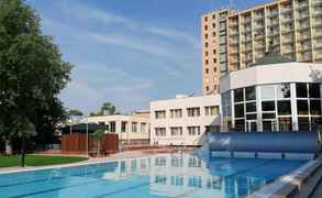 Отель большой,работает по системе все включено.Есть лечебный комплекс и бассейны.Номер светлый,с балконом,есть один канал на русском языке,кровать довольно мягкая.Питание хорошее,но обеды были иногда легкие(что тоже неплохо при обильной венгерской кухне) В зоне бассейнов не очень чисто,но это видимо,из-за многочисленности посетителей.Плавательный б...
