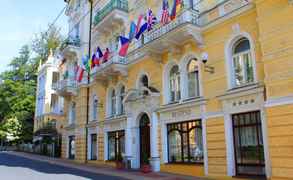 Удачное расположение отеля, окна выходят или в парк, или на тихую улицу. В то же время до источников идти всего 5-7 минут. Перед завтраком отличная прогулка. Питание на "четверку", хотелось бы больше блюд из мяса и рыбы. Но овощей и молочных блюд достаточно. Процедуры типичные для чешских курортов, есть и газовые уколы, и газовые мешки, и парафин д...
