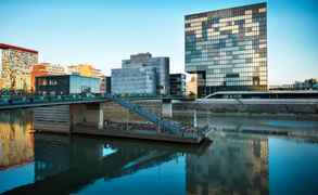 Отель находится в стильном новом здании в новом районе прямо на набережной реки, напротив зданий Новой таможни (достопримечательность Дюссельдорфа).