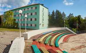 Это пансионат с лечением, есть даже минеральная вода Горячий ключ для питья, очень помогает при болезнях желудка и печени. Можно и просто оздоровиться, есть массажи, физиотерапия, бассейн, сауна. Воздух просто чудесный, так как территория большая и очень зеленая, напоминает ботанический сад, да и море совсем близко, минутах в семи, чувствуется его ...