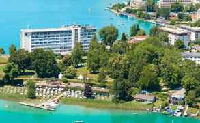 Отдыхали в сентябре 2013 года. Отличное месторасположение отеля- на полуострове, шикарный вид на озеро, особенно хорош вид ,если взять улучшенный номер, кругом парк. Очень хороший пляж , бассейн , бани , полотенца, лежаки , зонтики , велосипеды - все включено в стоимость. Приветливый отзывчивый персонал, летели до Вены, а потом еха...