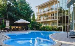 Уютный красивый отель с двумя бассейнами, есть сауна. Нам понравилось, что предусмотрены игры для детей разных возрастов, у нас как раз маленький ребенок и подросток. Вкусная еда, которая понравилась всей семье. Не успевали проголодаться. Море в двух шагах, чистое, галька. В номере было чисто и уютно, у нас был балкончик.