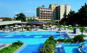 Отель весьма неплохой, большой, зона ресепшн приятная и большая, с баром и приглашёнными пианистами. Очень приличные термы- огромный уличный бассейн , да и СПА неплох, грязи/ванны озоновые понравились, на массаж не попали. Номера большие, балконы огромные. Кровати вот не очень удобные, узкие, да и санузлы "подуставшие", хотя видно, что денег было в...