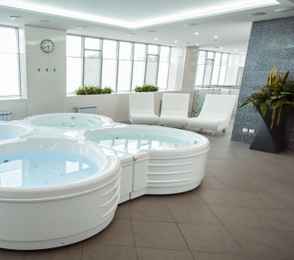 Городской СПА-отельУслуги:Сауна • Косметологические услуги • Массаж • Детская комната • Процедуры по уходу за лицом • Тренажерный зал • Услуги няни • Бильярд8.5(1)