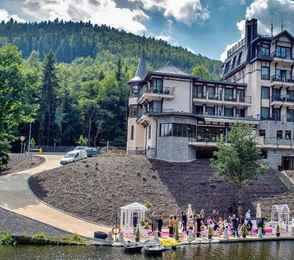 Загородный СПА-отельУслуги:Велнес/спа-центр • Грязелечение • Сауна • Паровая баня • Массаж • Поле для гольфа • Боулинг • Открытая терраса8(60)