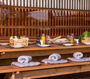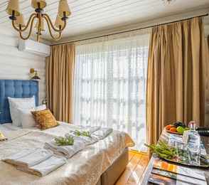 Загородный СПА-отельУслуги:Сауна • Детская комната • Анимация для взрослых и детей • Прокат спортивного инвентаря • Караоке • Открытая терраса • Открытая спортивная площадка • Санные и горнолыжные трассыот